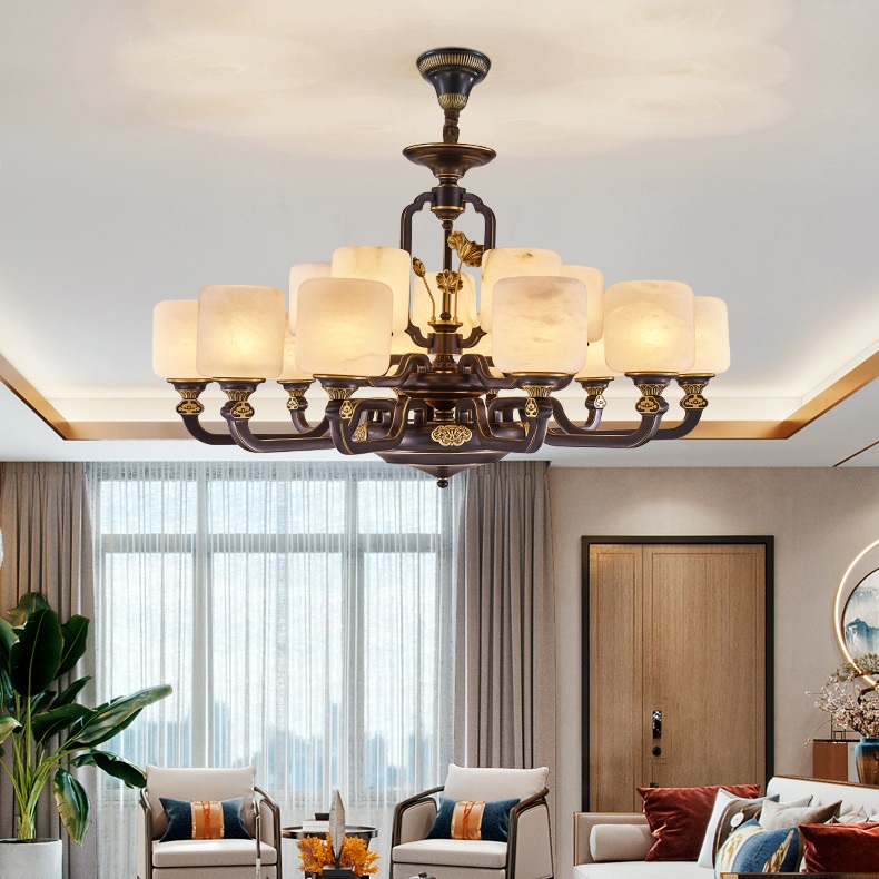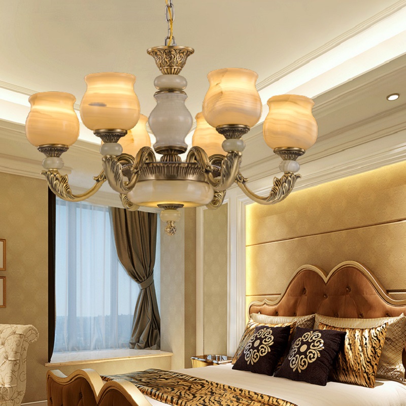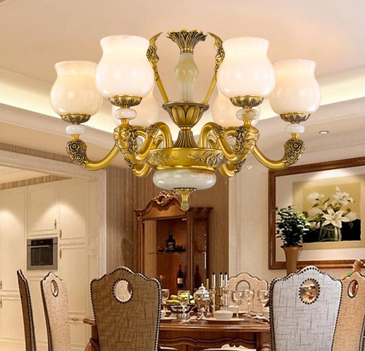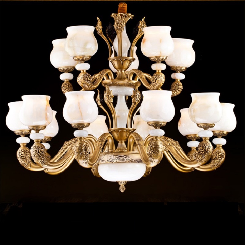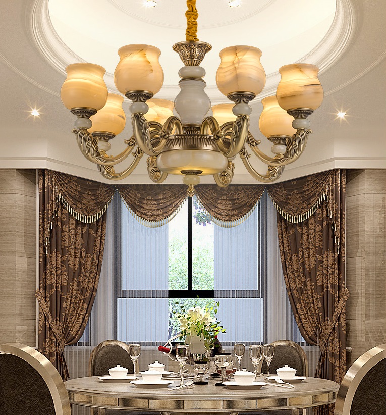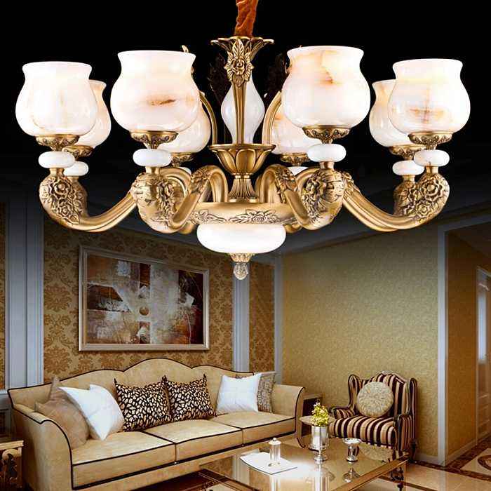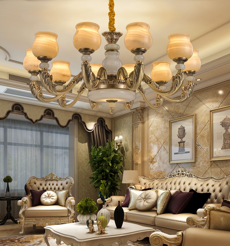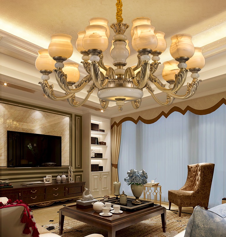 宝云灯饰全铜云石玉石灯由全铜灯体和西班牙进口天然云石灯罩或者进口天然玉石灯罩构成,是目前市面上最高档的灯具,广泛应用于自建房、别墅、商品房、酒店、会所、办公楼、书院、影剧院等装饰。