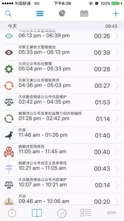 这是我们一个文案一天的时间记录,他的直属领导会根据这个时间记录来跟他分析一些工作上的事情,哪些项目用的时间长,他本不应该用这么长的时间去做这个事情用了这么长的时间,代表他在这一方面还没有熟练,或者是刻意的拖延,或是在做其他事情去了。哪几个项目本来要花比较长的时间,他却只花了一点点时间,代表他做这个事情没有认真,他的直属领导都会指出来。