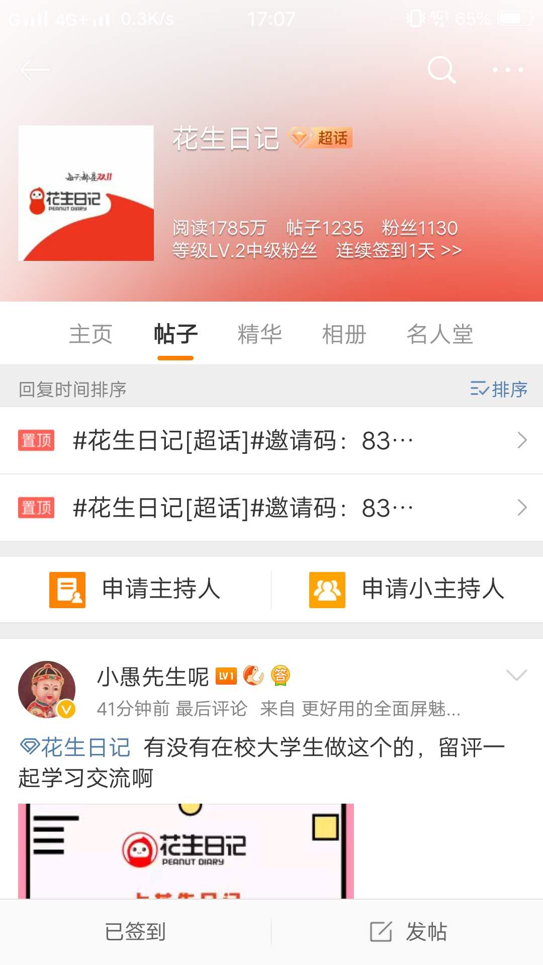 点击发帖,默认分享到微博朋友圈.,这里建议发的贴子最好也带有相关的关键词,这样一方面是给关注这个超话的粉丝看,但如果有人在微博里边搜索花生日记的时候,匹配程度也会高些,曝光率也会提高不少。