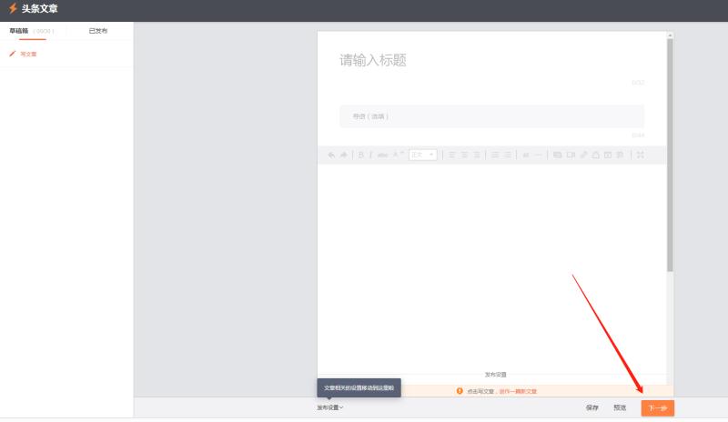 2、第二个要说的就是头条文章的发布,这个需要电脑端比较方便,如下图,点击进入编辑页面。