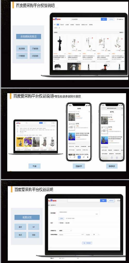 与百度爱采购平台认证等第三方服务商,签约完成后,由tp按照百度采购购商品质量规范帮助商家发布商品信息。