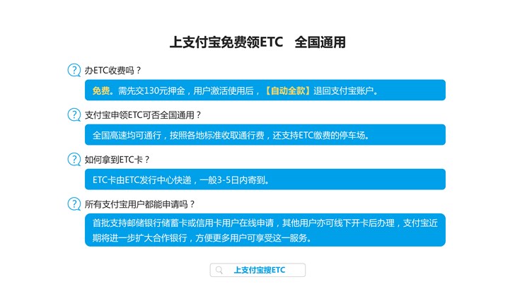 为了方便广大车主办理ETC,支付宝联合银行开通ETC免费申领,并提供设备包邮服务。支付宝方面表示,未来将进一步拓宽合作银行渠道,让更多用户享受便捷服务。