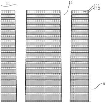 图1是三维存储器的一种叠形结构示意图,从图中可以看出,此叠形结构包括上下交替叠置的牺牲层111以及栅间介质层112,沟道通孔14。其中沟道通孔沿着叠层结构的厚度方向贯穿整个叠形结构,而各处的通孔宽度也不尽相同。牺牲层111的厚度与沟道通孔的宽度成正比,而栅间介质层112的厚度与沟道通孔的宽度成反比。因此在图1所示叠层结构中,当沿着叠层结构11的厚度方向由上而下时,站长资源平台沟道通孔的宽度和牺牲层的厚度逐层递减,栅间介质层的厚度逐层递增 。