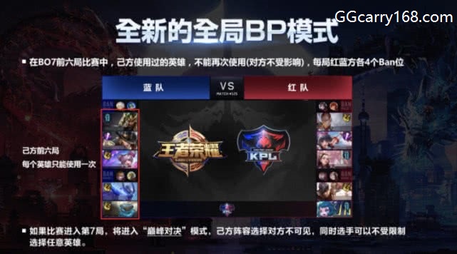 今年在2018秋季赛常规赛中经过激烈的角逐,共有10支队伍迈入季后赛的舞台,而此次季后赛也是首次采取全新的赛制——在BO7前6局比赛中,己方使用过的英雄,不能再次使用(对方不受影响),每局红蓝方各4个Ban位;如果比赛进入第7局,将进入“巅峰对决”模式,己方阵容选择对方不可见,同时选手可以不受限制选择任意英雄。
