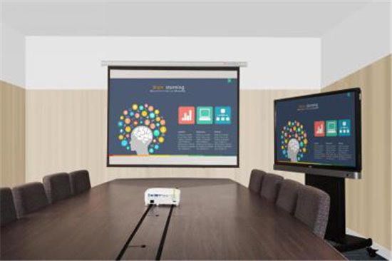 凭借产品众多的优势,明基商务会议解决方案可供企业自由选择搭配,无论是单一式产品或是集成式方案,一应满足商务用户的需求。例如智能会议平板可与商务投影机搭配,会议平板偏向书写记录的讨论型会议,而投影机适合规模较大的报告型会议,两者相辅相成,一间会议室就能把各种会开好。