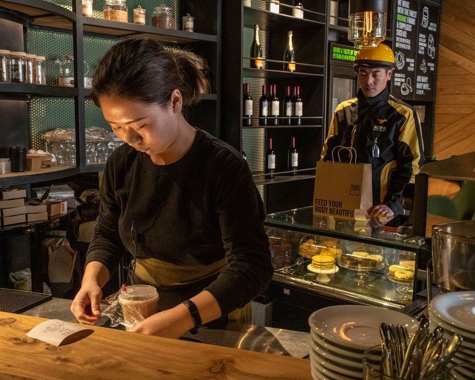林是一名有抱负的导演,他来到北京时心里已经为应对艰苦生活做好了准备。他还没有完全了解中国城市生活的新秩序,但很快就适应了。他基本上不去学校的自助餐厅,而是随时随地通过手机点汉堡、面条和孜然肉串,通常在30分钟内就可以吃到嘴里。当他冒着冬季的大雾到校门口去拿外卖时,总有一群快递员跺着脚取暖,等着其他学生来取外卖。“这样更方便,成本更低,”林说。“中国的这种效率真是令人吃惊。”