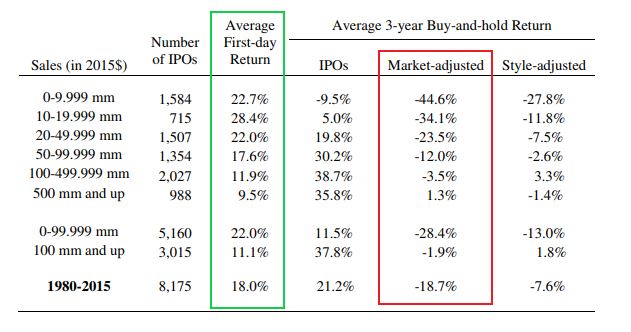 目前美股上市公司的数量已较1997年的7000家砍半至3400多家,很多人想要IPO打新之后马上变现获利。所以IPO获得超额认购可能由理性和非理性行为同时组成,取决于人们的投资时间线长度,以及IPO首日行情的幸运程度。