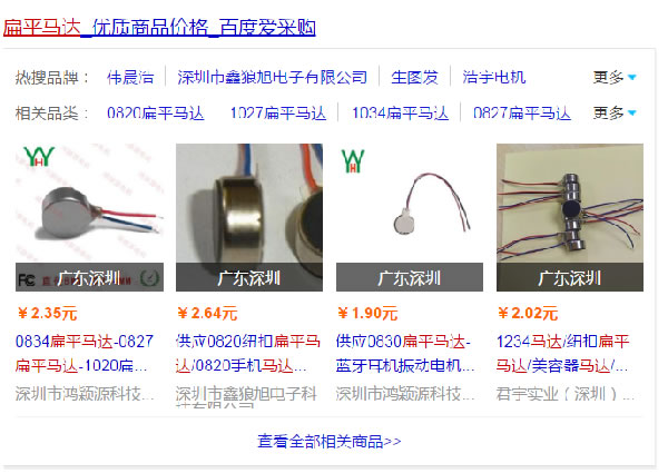 如果你细心的话,在搜索相关的关键词,会在第一页发现百度爱采购。其主要在搜索页面结果端,是以商品列表的形式展现出来4个,之后点击进去就会到达相关的列表页,可查看更多相关的产品。