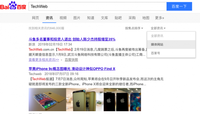 为满足需求 百度资讯搜索来源可区分“媒体网站”和“百家号”了