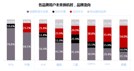 各品牌换机时本品牌留存率