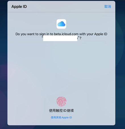 ▲使用Touch ID登录beta.icloud.com的iPadOS