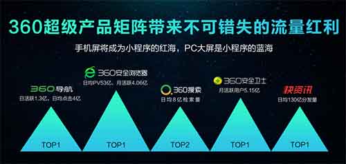 最近,360召开发布会,宣布自己内测许久的360小程序也开始推到前线,准备大展拳脚,成为在微信,支付宝,今日头条,百度后进入小程序领域的互联网公司,并且走向了不同与其他几家的的发展路线,主打pc端,果然是360的风格,不走寻常路!