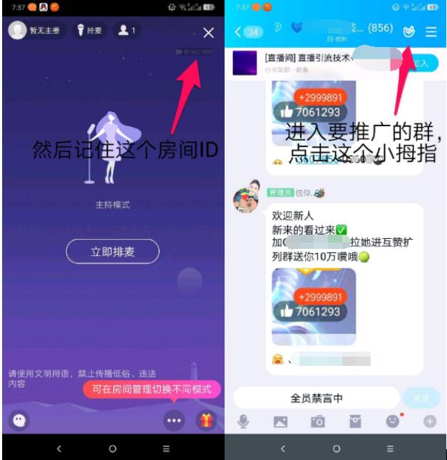 第三步:然后记住这个房间的ID,进入要推广的群。点手机QQ上的这个小拇指。