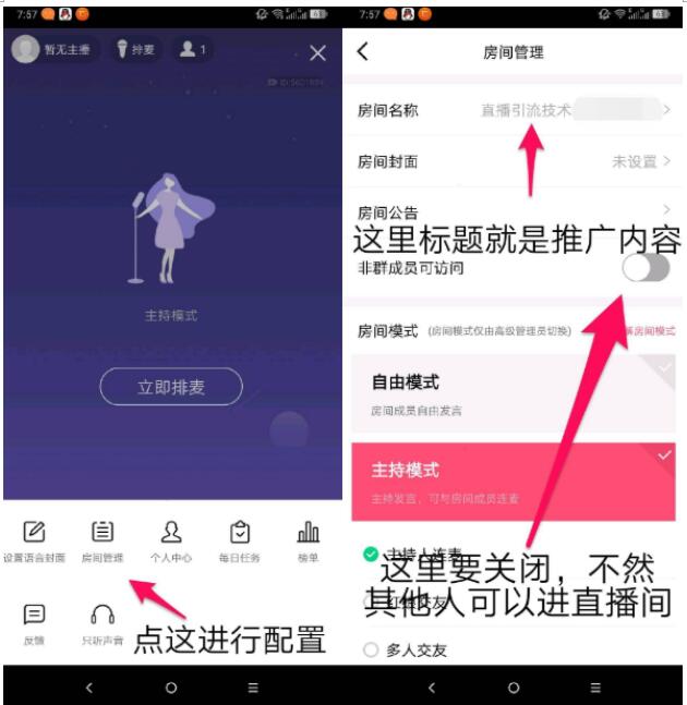 第二步:点“房间管理”进行配置。房间的卢松松名称就是推广的内容。