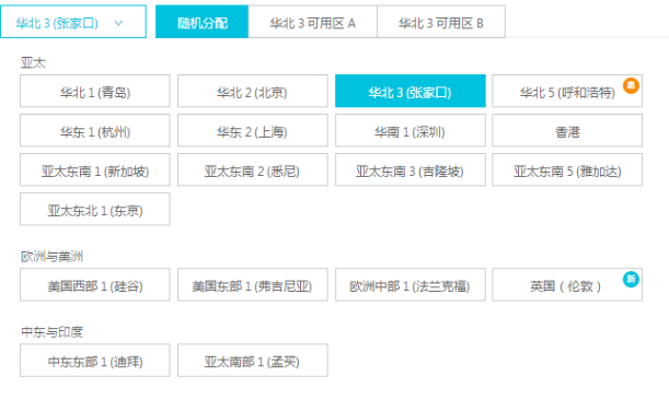 当前阿里云可供我们国内选择的区域有:华北1(青岛),华北2(北京),华北3(张家口),华北5(呼和浩特),华东1(杭州),华东2(上海),华南1(深圳)。海外地域有:香港,亚太东南1(新加坡),亚太东南2(悉尼),亚太东南3(吉隆坡),亚太东南5(雅加达)等。