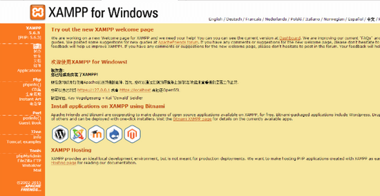 点击“中文”访问:http://localhost/xampp/index.php ,出现以下页面,基本完成了xampp的安装了。