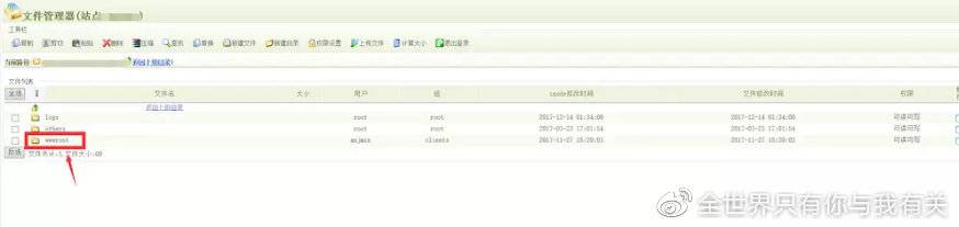 点击wwwroot进入到网站的根目录(注意:wwwroot就是网站的根目录,所有的文件肯定都是上传到这个文件夹里面的,其他的文件夹和文件不能删除)