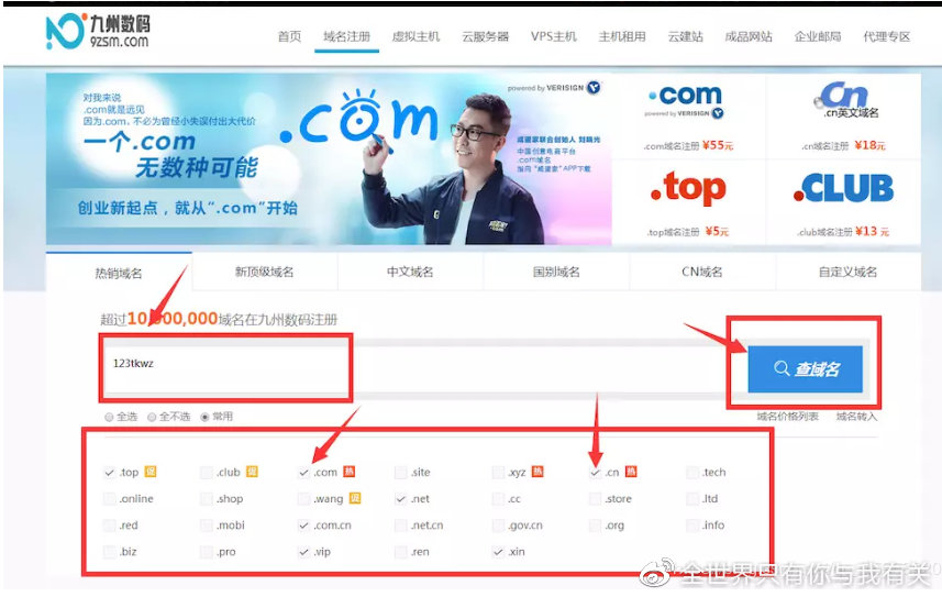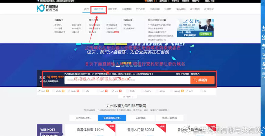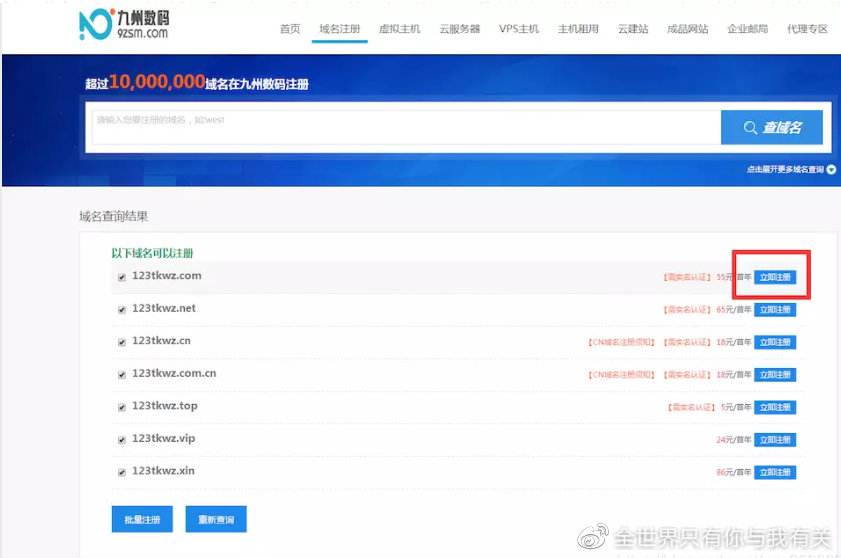 我们先注册域名。想一个域名(英文字母),查询域名是否被别人注册