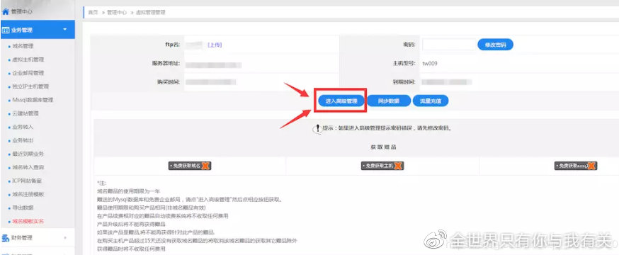 管理中心》虚拟主机管理》查看是否有刚买的虚拟主机