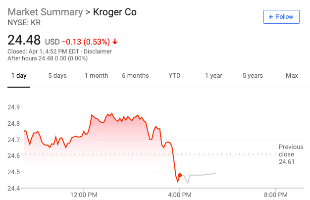 消息公布后,美国杂货股集体下跌。