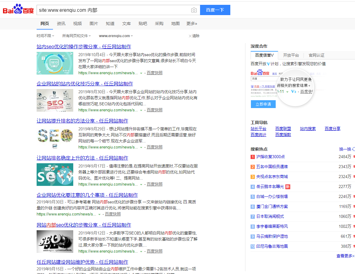 为了找到可以添加内部链接的相关关键词文章,可以使用site修饰符。例如,假如我有一篇关于“内部链接”的博客文章。现在我们拿任丘网站制作来看效果我需要查找其他相关的文章添加内链,如下所示: