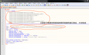 第二步:替换或者增加(增加就是直接按照格式复制上去)自己的需要提交的网址链接,和替换自己的代码接口地址。如图:
