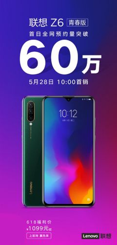 5月22日,联想在国家北斗科技园举办新品发布会,正式发布了一款千元性价比新机联想Z6青春版,值得注意的是,该机还是全球首款支持北斗三号信号系统的手机。现在有最新消息,该机现已在官网等平台开启预约,并将于明日正式首销,售价1099元起。