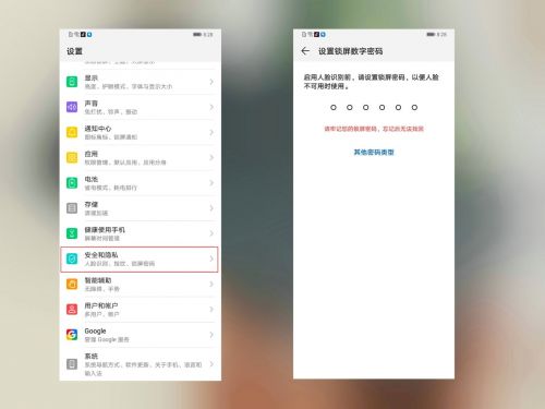 打开设置——安全和隐私——菜单中有指纹、人脸、和锁屏密码
