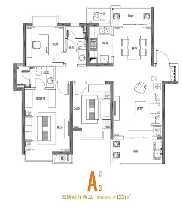 市民王先生最中意的还是122平的三房户型,南北双阳台,房子的通透度和空间的尺度感更加显现,完全可以成为一家人活动的小天地。尺度更大,但是依然是三房的设计,那么每个房间就更具舒适度,让生活更体面。尤其是主卧,多了一个衣帽间的设计,拿市民王先生的话说就是“衣帽间,我看了是衣帽间,我老婆看了,就不是衣帽间而是维密现场!”依然每个房间都有飘窗,保证每个房间的景观效果,累的时候,拉开窗帘,入眼的绿植繁茂和宽阔视野,让一切烦心事随风而去。