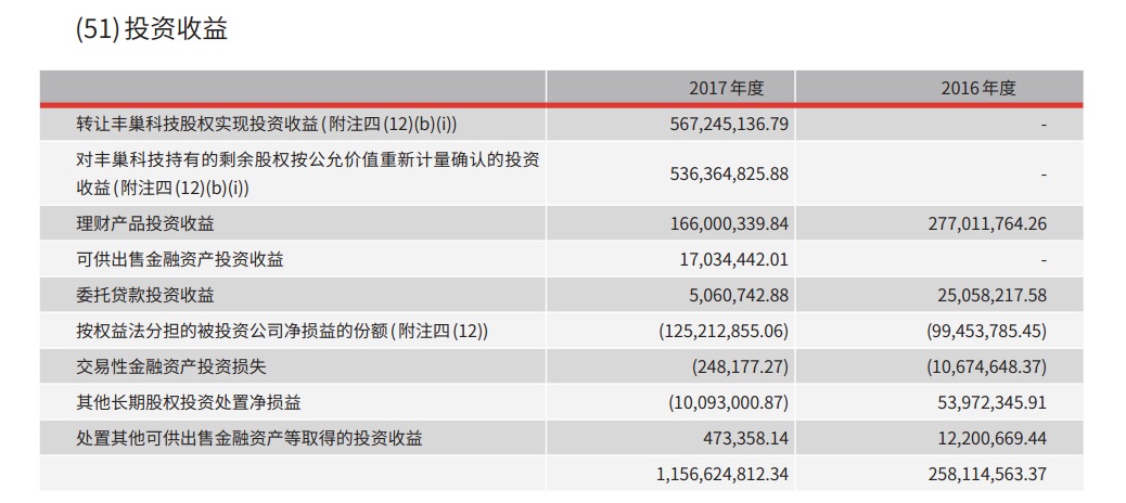 顺丰控股2017年投资收益情况 图片来源:顺丰控股财报