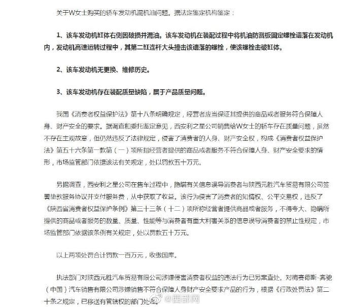 西安女奔驰车主维权案调查处理结果公布