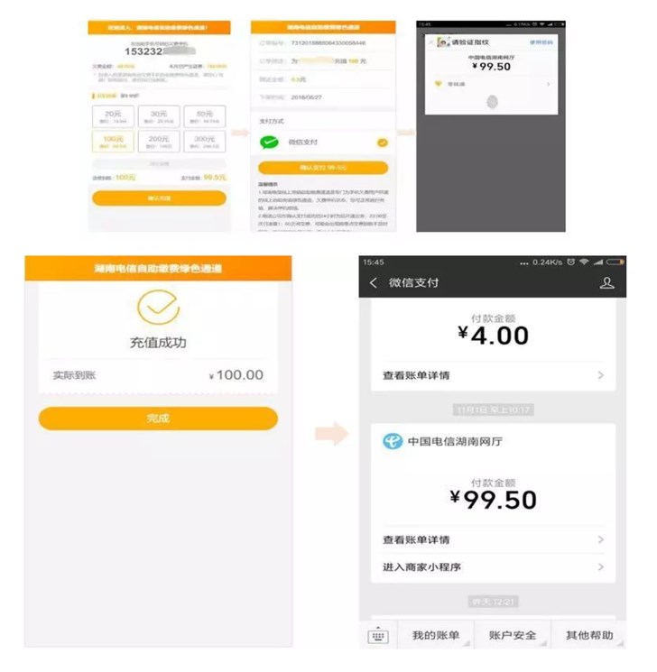 在手机停机之后,或者停机的同时,运营商会给用户发一条短信,并提供一个链接,引导用户到“绿色缴费通道”里面通过微信支付缴费。如果用户没能收到短信,打开浏览器访问网站,过去欠费状态下什么都看不到,而现在只要保持数据流量开关打开,也会马上跳转到“绿色缴费通道”web页面上来。