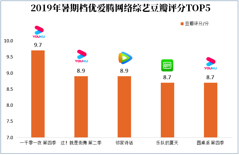 2019暑期档优爱腾共上线网综27档,其中,《这!就是街舞》第二季创下暑期档综艺热度、口碑双高峰,领跑暑期档。骨朵报告显示,《这街2》在网综中弹幕数量最多,高达130万,并达成“上线三小时豆瓣开分9.7”的成就,打破综N代魔咒。据悉,目前《这街2》正在将触角延伸到电商、巡演赛事、舞者培训等多个层面,IP从线上“炸”到线下。