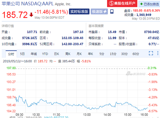 苹果在美国最高法院关于iPhone App反垄断案件中败诉。截至收盘,苹果重挫逾5.8%,报185.72美元。