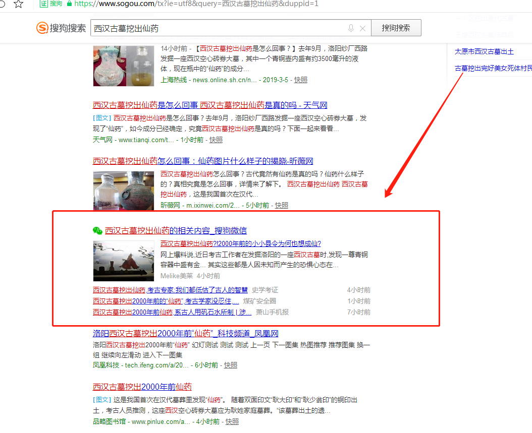 还有一个就是搜索结果页面,这是公众号特殊的权利,微信公众号发布的文章会被搜狗搜索引擎进行爬取从而获取在搜狗页面的排名。