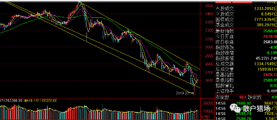 技术上看,目前我们仍然处于3578的下跌通道,券商上一周的大涨并没有改变什么,目前在下地的第二个支撑线之上,周五收盘跌破了5日支撑线,按照前面两轮接触上压力位后,然后一路下跌,在反弹时都是在中部震荡,然后在去触碰上压力位的走势看,这一轮应该还是这样,而且逐浪高点会越来越低,在上周2449的政策底明确后,那么我们的市场底会哪呢?