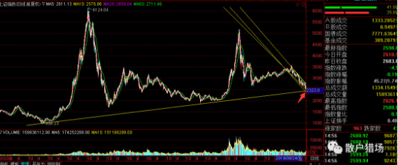 从05年的998开始,到13年第14年初的2000点附近,如果按照这个支撑划一条线,这条线落到现在差不多在2325-2360之间,如果这个支撑有效,现在指数是2598点,差不多还有8-10%的下跌,周五美股又大跌了,外围的大跌A股真的很难独善其身的,所以A股跟跌的概率在90%以下,加上券商上周涨幅巨大,这个板块获利盘回吐回调的话,指数肯定会跟着在跌。很多人都说今年很像08年,那么08年的政策底和市场底相隔了1个半月,市场底指数隔政策底下跌幅度8.15%,所以我们春天离我们真的很近很近了。