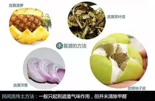 还有使用柚子皮、橘子皮、洋葱等去甲醛的,这些东西都是利用自身的特殊气味掩盖住了污染物的异味,让我们以为家中没有污染了,完全没有任何除甲醛的作用。