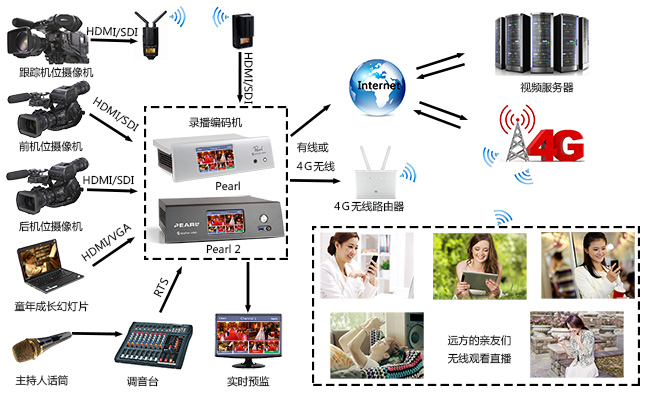 如果您的前端是4K超高清摄像机,那么还可以选用Pearl的二代产品Pearl 2,它不仅继承了一代的所有功能,而且还具有两路12G-SDI和4K-HDMI的输入接口,让您的视频质量紧跟时代的步伐。如果不想花费太多的钱来购买这台设备,那么该设备厂家正在实行的设备租赁服务,就能恰到好处的满足您的需求了。来吧,如此强大功能另加低廉价位,让我们把终身大事办的漂漂亮亮,风风光光的现场直播进行到底吧。