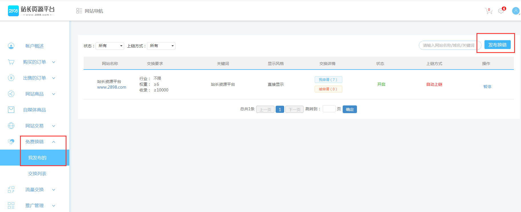 1.被申请交换的网站,如果是自动上链,需要给对方上链后才能进行交换。
