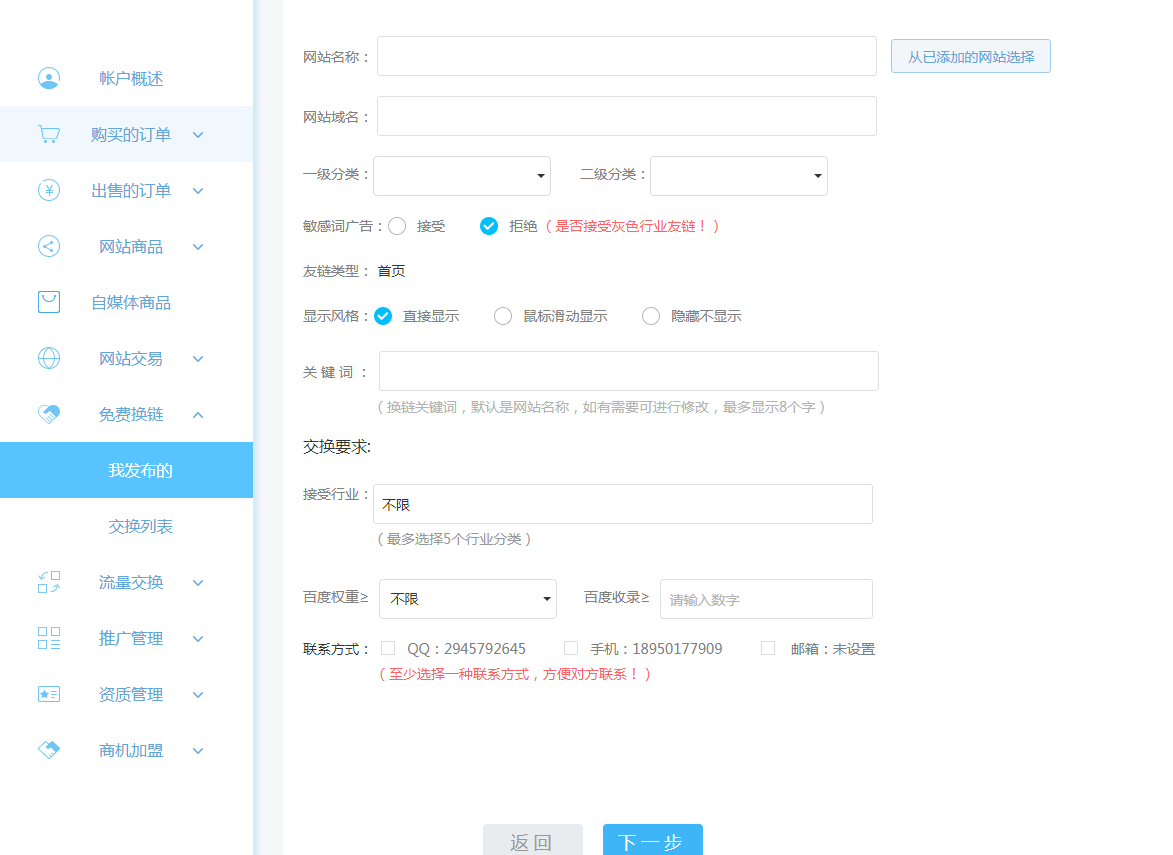 2.加入交换的网站,必须对其拥有直接管理权或者间接管理权。
