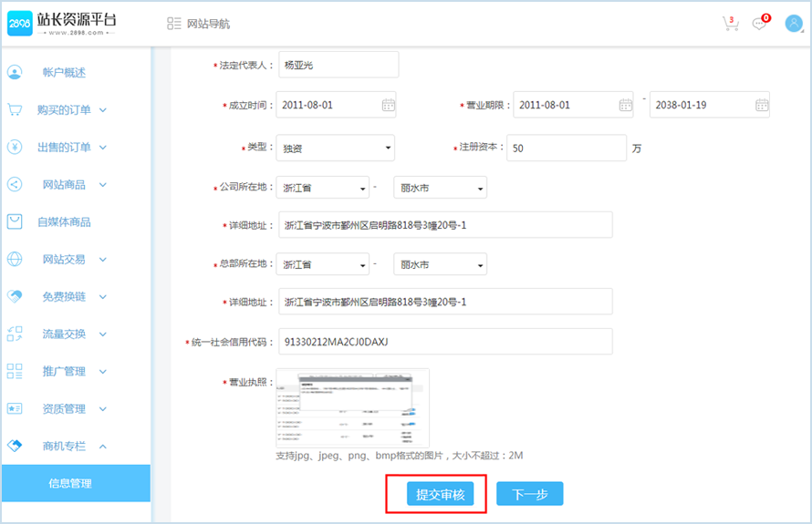 第二步:所有信息填写完成后,提交审核。审核结果会发送到系统消息,请及时查看。
